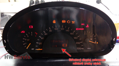 - nefunkční podsvícení středového displeje.